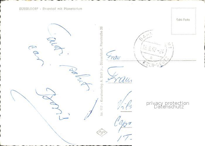 72405115 alte Postkarte DuessELDORF CITY Ehrenhof mit Planetarium Springbrunnen postalisch gelaufen Erhaltung siehe scans KatCode: 11110005111000