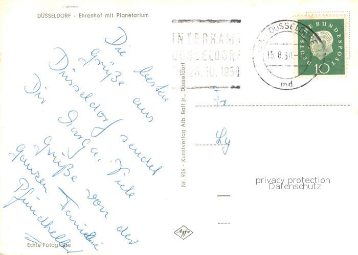 73649720 DuessELDORF CITY Ehrenhof mit Planetarium postalisch gelaufen Erhaltung siehe scans [WerneD78] alte Postkarte Wern Katcode 11110005111000