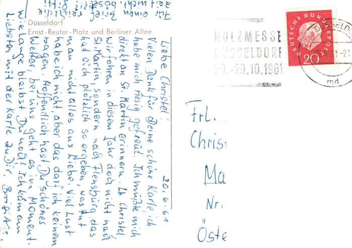 73924456 DuessELDORF CITY Ernst Reuter Platz und Berliner Allee postalisch gelaufen Erhaltung siehe scans [WerneD78] alte Postkarte Wern Katcode 11110005111000