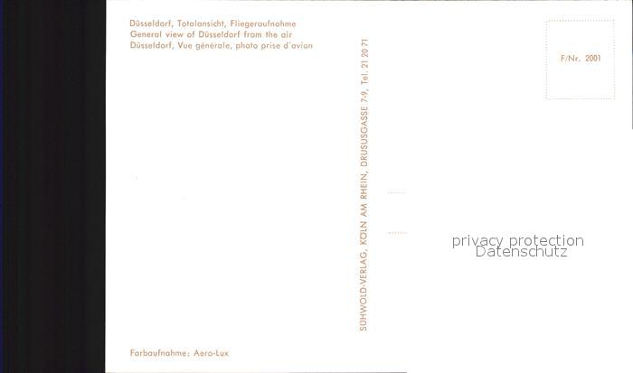 72419356 DuessELDORF CITY Fliegeraufnahme postalisch nicht gelaufen Erhaltung siehe scans KatCode: 11110005111000