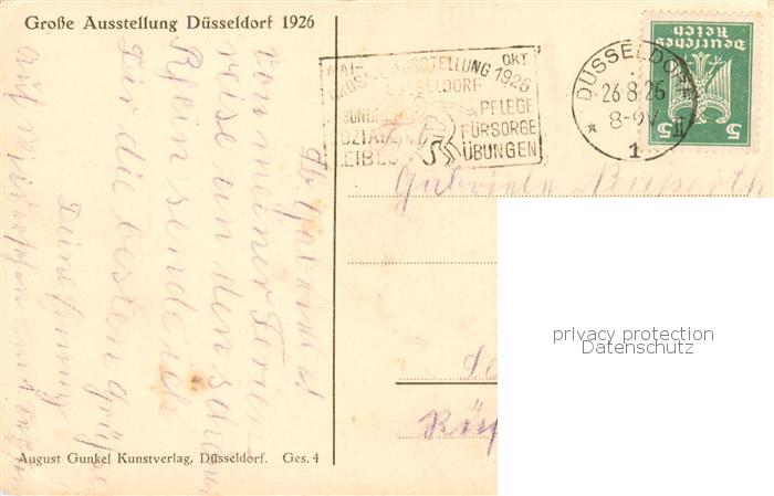 73851761 DuessELDORF CITY Gesolei Grosse Ausstellung 1926 postalisch gelaufen Erhaltung siehe scans [FriedD77] alte Postkarte Frie Katcode 11110005111000