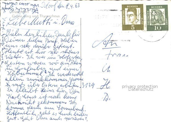 72208677 alte Postkarte DuessELDORF CITY Groene Jong Thyssenhaus postalisch gelaufen Erhaltung siehe scans KatCode: 11110005111000