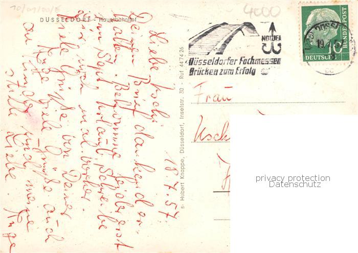 73866858 DuessELDORF CITY Hauptbahnhof postalisch gelaufen Erhaltung siehe scans [FriedD77] alte Postkarte Frie Katcode 11110005111000