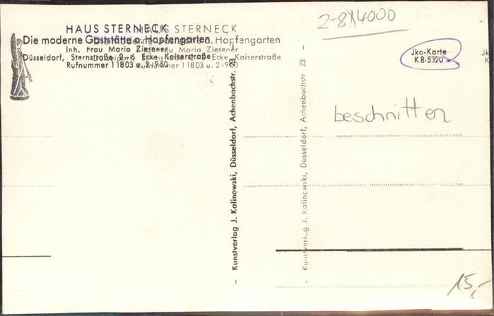 41398293 DuessELDORF CITY Haus Sterneck Gastraum postalisch nicht gelaufen Erhaltung mit Maengel Alte Ansichtskarte Postkarte hz_W Katcode 11110005111000