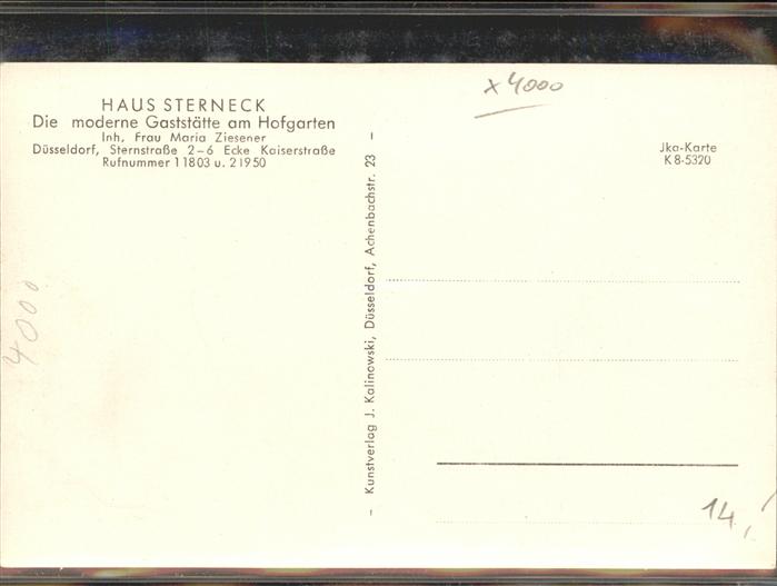 41397932 DuessELDORF CITY Haus Sterneck Restaurant am Hofgarten Maria Ziesener postalisch nicht gelaufen gute Erhaltung Alte Ansichtskarte Postkarte hz_L Katcode 11110005111000