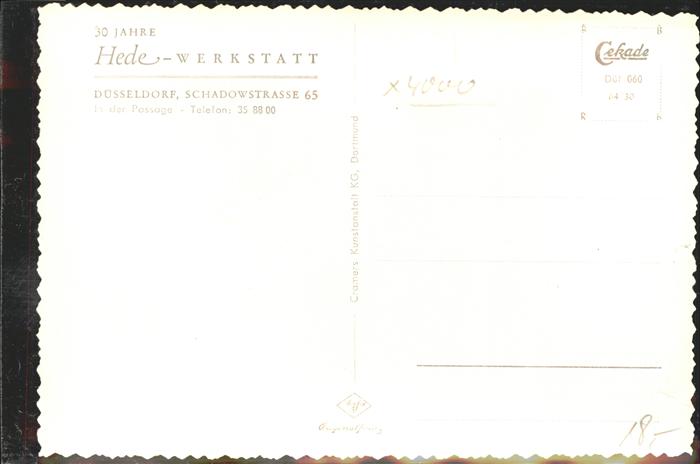 41398429 DuessELDORF CITY Hede Werkstatt postalisch nicht gelaufen gute Erhaltung Alte Ansichtskarte Postkarte hz_W Katcode 11110005111000