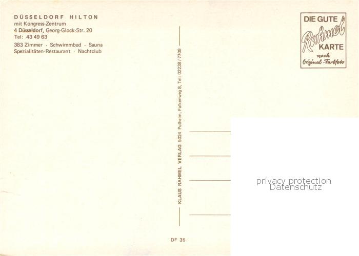 73777826 DuessELDORF CITY Hilton Hotel postalisch nicht gelaufen Erhaltung siehe scans [WerneD78] Wern Katcode 11110005111000