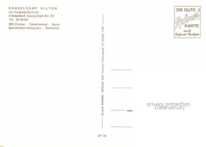 72701082 DuessELDORF CITY Hilton Hotel postalisch nicht gelaufen Erhaltung siehe scans [FriedD77] KatCode: 11110005111000