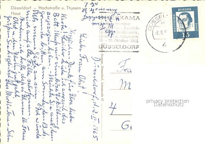 71971121 alte Postkarte DuessELDORF CITY Hochstrasse Thyssenhaus Fliegeraufnahme postalisch gelaufen Erhaltung siehe scans KatCode: 11110005111000