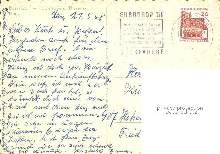 72282287 alte Postkarte DuessELDORF CITY Hochstrasse Thyssenhaus Hochhaus postalisch gelaufen Erhaltung siehe scans KatCode: 11110005111000