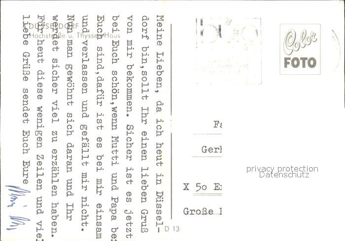 71972709 alte Postkarte DuessELDORF CITY Hochstrasse und Thyssen Haus postalisch gelaufen Erhaltung siehe scans KatCode: 11110005111000