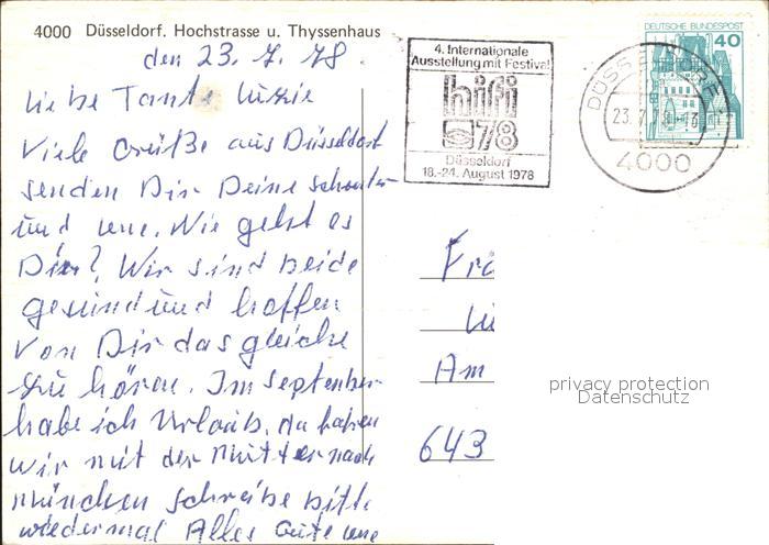 72035420 alte Postkarte DuessELDORF CITY Hochstrasse und Thyssenhaus Hochhaus postalisch gelaufen KatCode: 11110005111000