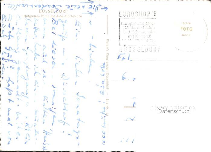 72180970 alte Postkarte DuessELDORF CITY Hofgarten Partie mit Auto Hochstrasse postalisch gelaufen Erhaltung siehe scans KatCode: 11110005111000