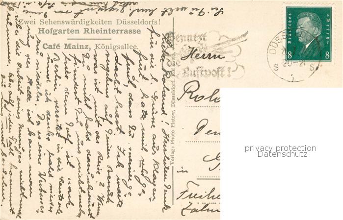 73777632 DuessELDORF CITY Hofgarten Rheinterrasse Cafe Mainz Koenigsallee postalisch gelaufen Erhaltung siehe scans [WerneD78] alte Postkarte Wern Katcode 11110005111000