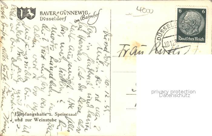 41968167 DuessELDORF CITY Hotel Baver Guennewig Empfangshalle postalisch gelaufen Erhaltung siehe scans Alte Ansichtskarte Postkarte alte Postkarte Frie Katcode 11110005111000