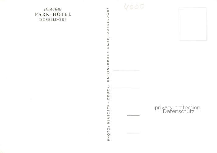 73845161 DuessELDORF CITY Hotel Halle Park Hotel Duesseldorf postalisch nicht gelaufen Erhaltung siehe scans [WerneD78] Wern Katcode 11110005111000
