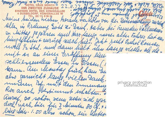 74024159 DuessELDORF CITY Hotel Haus Muench Koenigsallee postalisch gelaufen Erhaltung siehe scans [WerneD78] alte Postkarte Wern Katcode 11110005111000