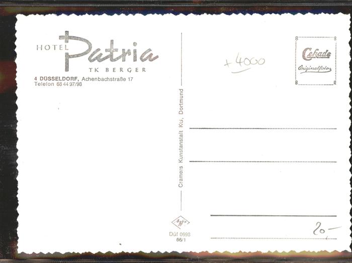 41399061 DuessELDORF CITY Hotel Patria TK BERGER postalisch nicht gelaufen gute Erhaltung Alte Ansichtskarte Postkarte hz_L Katcode 11110005111000