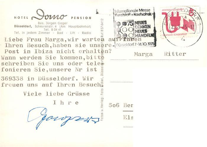 73876984 DuessELDORF CITY Hotel Pension Domo Gastraeume Zimmer postalisch gelaufen Erhaltung siehe scans [FriedD77] alte Postkarte Frie Katcode 11110005111000