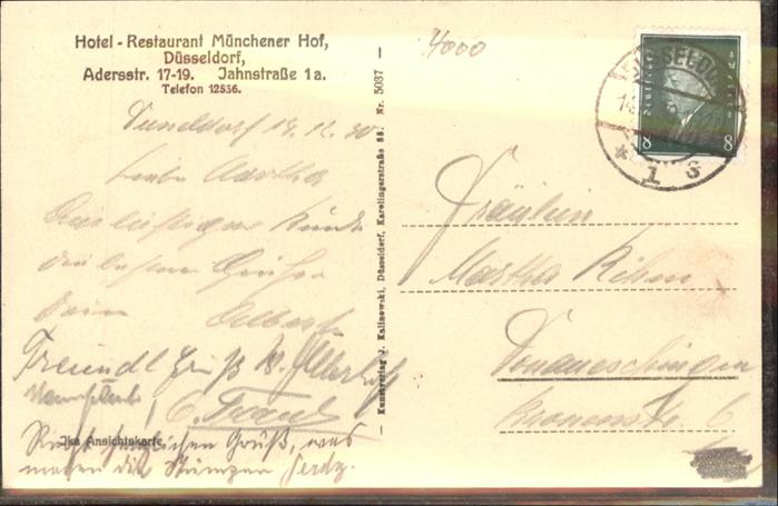 41003234 DuessELDORF CITY Hotel Restaurant Muenchner Hof postalisch gelaufen Alte Ansichtskarte Postkarte alte Postkarte Katcode 11110005111000