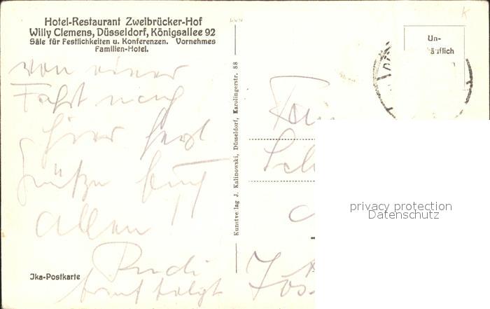 72129115 alte Postkarte DuessELDORF CITY Hotel Restaurant Zweibruecker Hof postalisch gelaufen Erhaltung siehe scans KatCode: 11110005111000