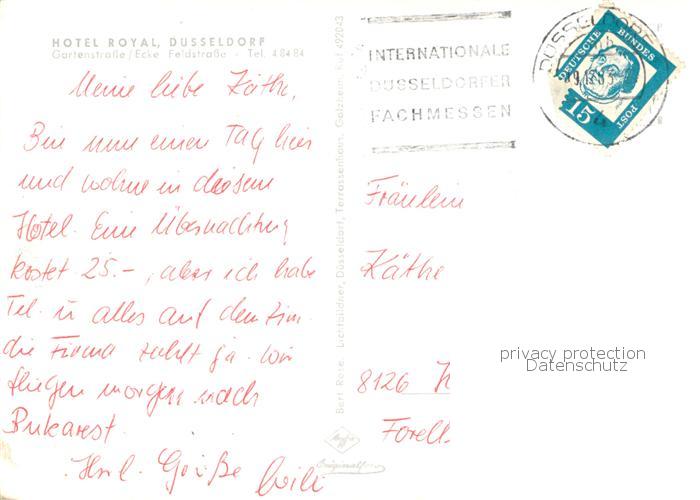 73777844 DuessELDORF CITY Hotel Royal Reception postalisch gelaufen Erhaltung siehe scans [WerneD78] alte Postkarte Wern Katcode 11110005111000