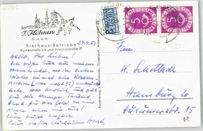 40032296 DuessELDORF CITY ierhaus Fischl postalisch gelaufen Alte Ansichtskarte Postkarte alte Postkarte Katcode 11110005111000