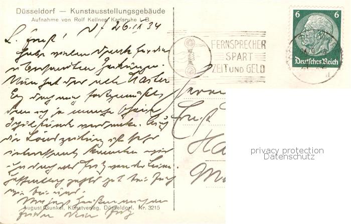 73812268 DuessELDORF CITY Kunstausstellungsgebaeude postalisch gelaufen Erhaltung siehe scans [WerneD78] alte Postkarte Wern Katcode 11110005111000