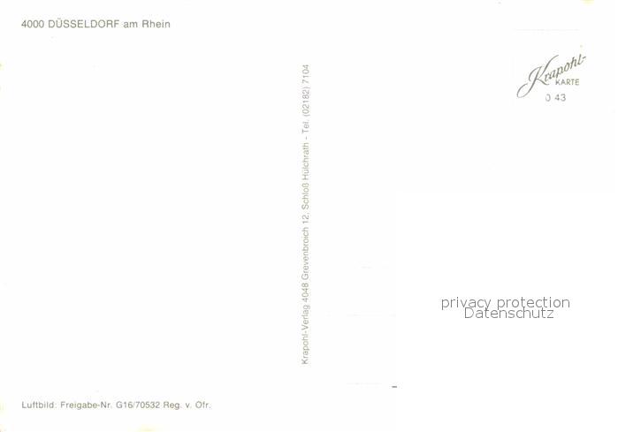 72786046 DuessELDORF CITY Landeshauptstadt am Rhein Fliegeraufnahme postalisch nicht gelaufen Erhaltung siehe scans [FriedD77] KatCode: 11110005111000