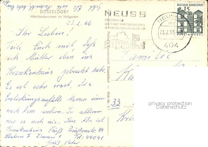 72319777 alte Postkarte DuessELDORF CITY Maerchenbrunnen im Hofgarten postalisch gelaufen Erhaltung siehe scans KatCode: 11110005111000
