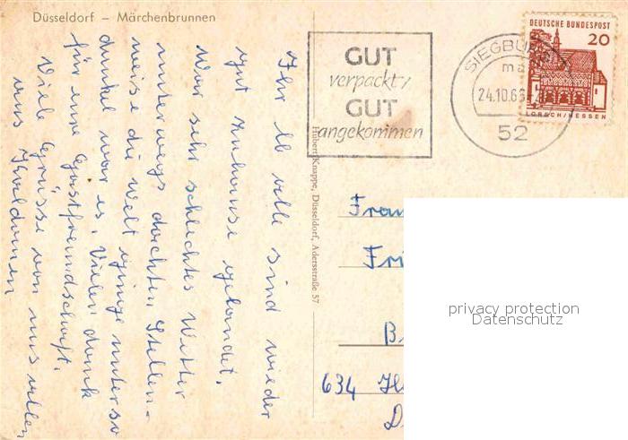 72763636 alte Postkarte DuessELDORF CITY Maerchenbrunnen postalisch gelaufen Erhaltung siehe scans [AndreD76] KatCode: 11110005111000
