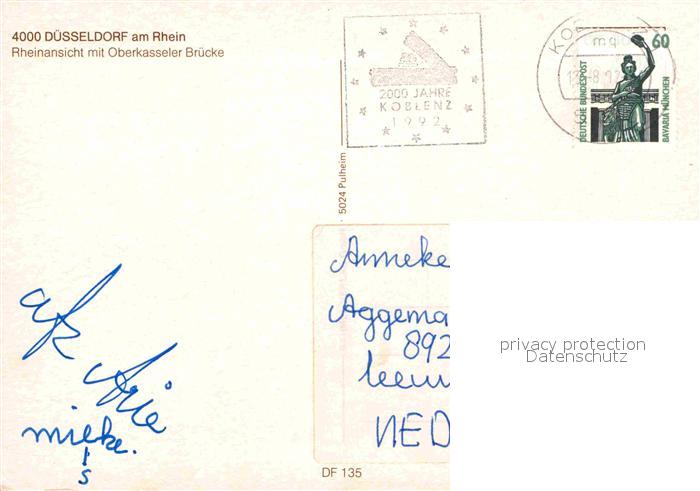 72856208 alte Postkarte DuessELDORF CITY Oberkasseler Bruecke postalisch gelaufen Erhaltung siehe scans [NatalD47] KatCode: 11110005111000