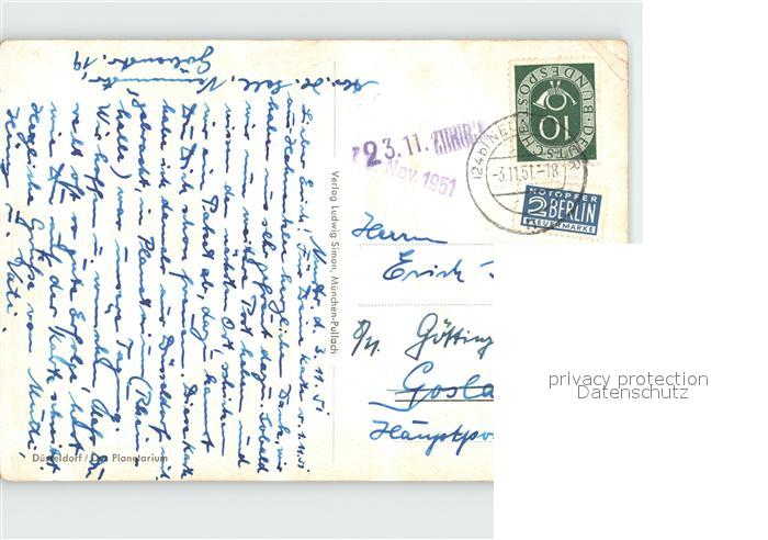 72110878 alte Postkarte DuessELDORF CITY Planetarium postalisch gelaufen Erhaltung siehe scans KatCode: 11110005111000