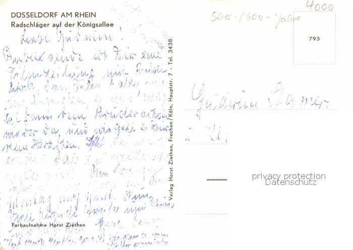 72886779 DuessELDORF CITY Radschlaeger auf der Koenigsallee postalisch nicht gelaufen Erhaltung siehe scans [WerneD78] KatCode: 11110005111000