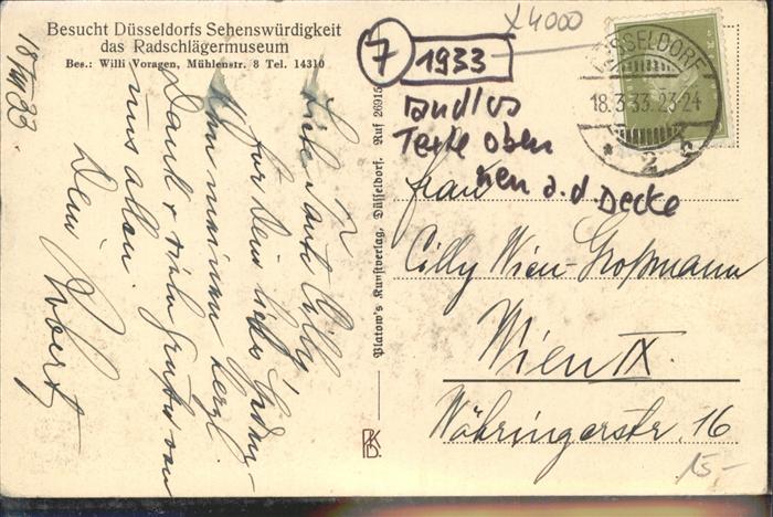 41398531 DuessELDORF CITY Radschlaeger Museum postalisch gelaufen gute Erhaltung Alte Ansichtskarte Postkarte alte Postkarte hz_W Katcode 11110005111000