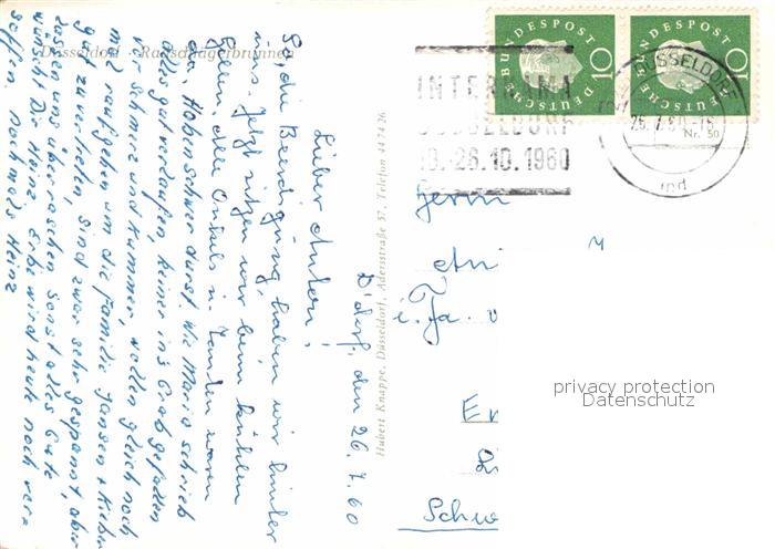 72790796 alte Postkarte DuessELDORF CITY Radschlaegerbrunnen postalisch gelaufen Erhaltung siehe scans [AndreD76] KatCode: 11110005111000