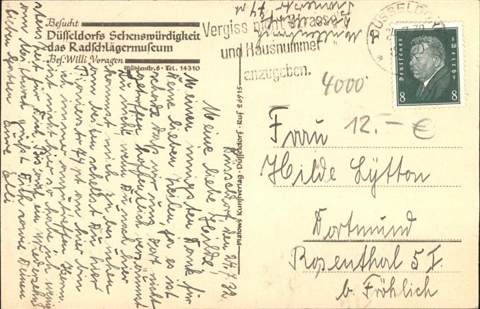 41317991 DuessELDORF CITY Radschlaegermuseum postalisch gelaufen gute Erhaltung Alte Ansichtskarte Postkarte alte Postkarte Stef Katcode 11110005111000