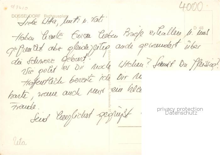 73866859 DuessELDORF CITY Rathausplatz Denkmal Markt postalisch nicht gelaufen Erhaltung siehe scans [FriedD77] Frie Katcode 11110005111000