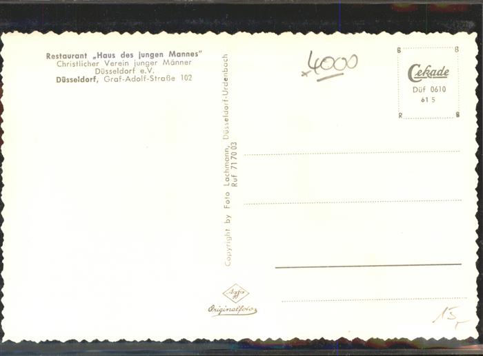 41398406 DuessELDORF CITY Restaurant Haus des jungen Mannes postalisch nicht gelaufen gute Erhaltung Alte Ansichtskarte Postkarte hz_W Katcode 11110005111000
