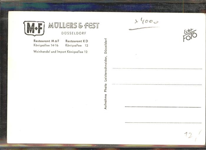41397771 DuessELDORF CITY Restaurant Muellers und Fest Koenigsallee 12 postalisch nicht gelaufen Alte Ansichtskarte Postkarte hz_L Katcode 11110005111000