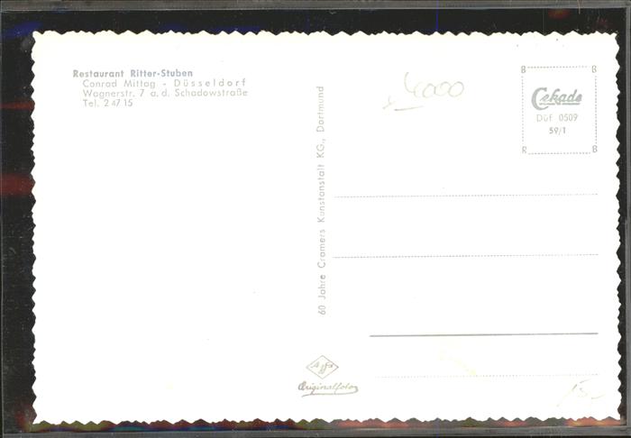 41398407 DuessELDORF CITY Restaurant Ritter Stuben postalisch nicht gelaufen gute Erhaltung Alte Ansichtskarte Postkarte hz_W Katcode 11110005111000
