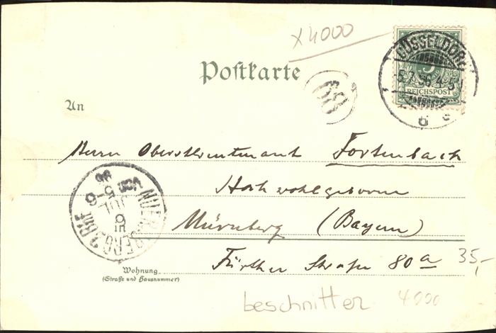 41399658 alte Postkarte DuessELDORF CITY Rhein Schiffbruecke Kunstgewerbe Schule Justizgebaeude Markt Denkmal Kurfuerst Johann Wilhelm postalisch gelaufen Erhaltung mit Maengel KatCode: 11110005111000