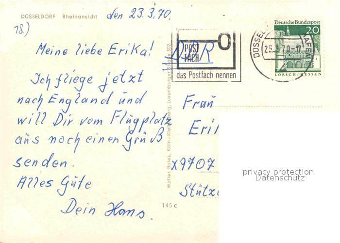 72616541 alte Postkarte DuessELDORF CITY Rheinansicht Dampfer Kirche postalisch gelaufen Erhaltung siehe scans [FriedD77] KatCode: 11110005111000