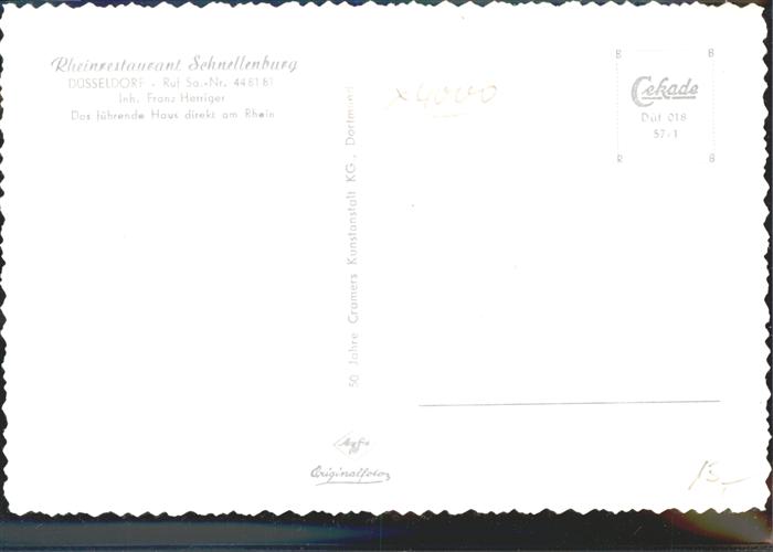 41398376 DuessELDORF CITY Rheinrestaurant Schnellenburg Gastraum postalisch nicht gelaufen gute Erhaltung Alte Ansichtskarte Postkarte hz_W Katcode 11110005111000