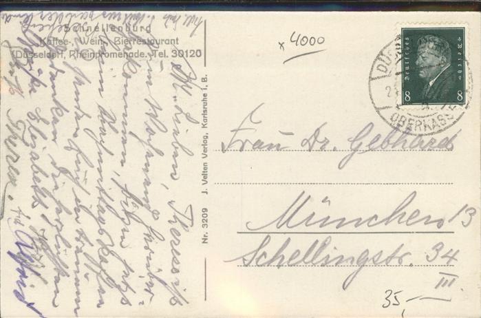 41398514 DuessELDORF CITY Rheinrestaurant Schnellenburg postalisch gelaufen Alte Ansichtskarte Postkarte alte Postkarte hz_W Katcode 11110005111000