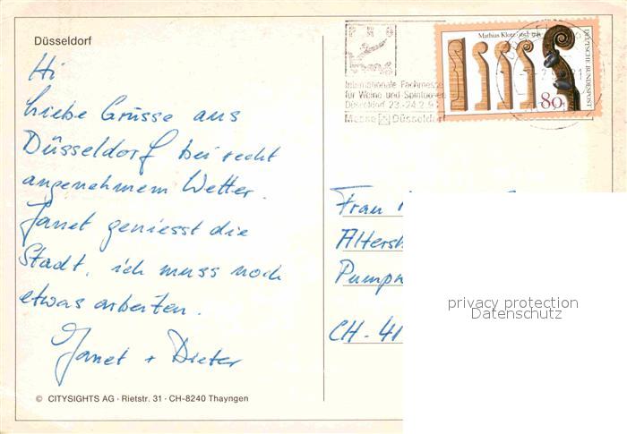 72739963 alte Postkarte DuessELDORF CITY Rheinturm Schloss Rathaus Denkmal Riesenrad Gebaeude Architektur postalisch gelaufen Erhaltung siehe scans [FriedD77] KatCode: 11110005111000