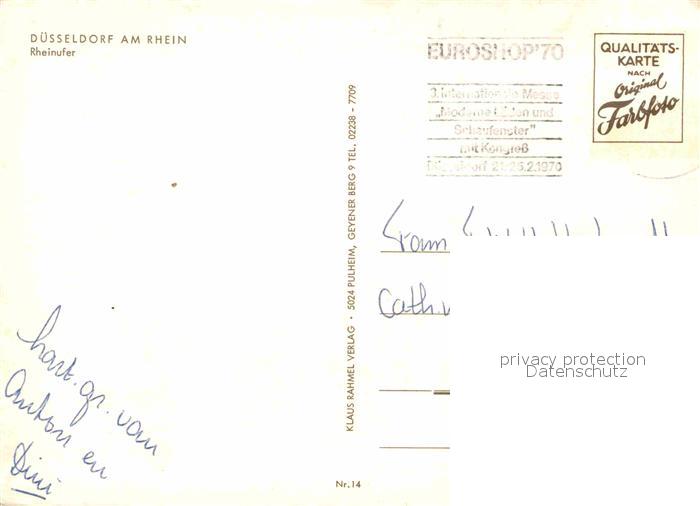 72875654 alte Postkarte DuessELDORF CITY Rheinufer Kirche Hochhaus postalisch gelaufen Erhaltung siehe scans [FriedD77] KatCode: 11110005111000