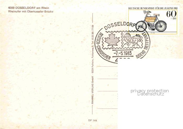 72699502 alte Postkarte DuessELDORF CITY Rheinufer mit Oberkasseler Bruecke postalisch gelaufen Erhaltung siehe scans [WerneD78] KatCode: 11110005111000
