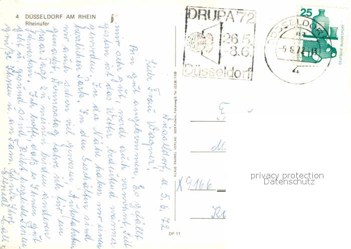 72640413 alte Postkarte DuessELDORF CITY Rheinufer Passagierdampfer postalisch gelaufen Erhaltung siehe scans [FriedD77] KatCode: 11110005111000