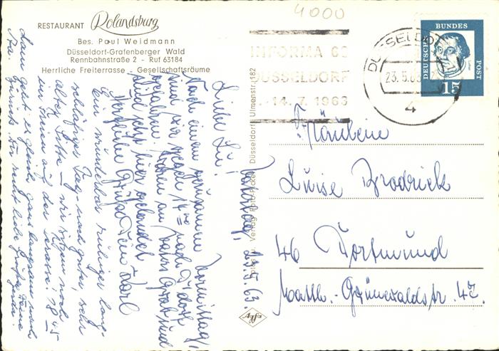 41300313 DuessELDORF CITY Rolandsburg Restaurant Jagdzimmer Spanisches Zimmer postalisch gelaufen gute Erhaltung Alte Ansichtskarte Postkarte alte Postkarte hz_L Katcode 11110005111000